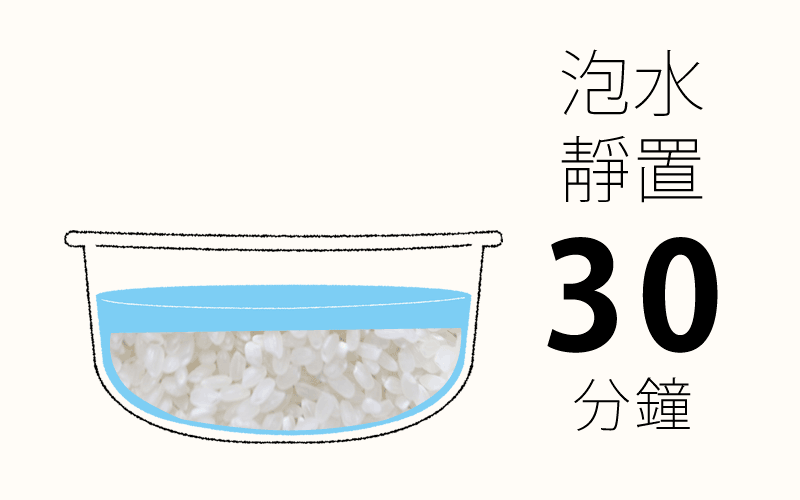 三、泡水:將白米靜置,泡水大約30分鐘。