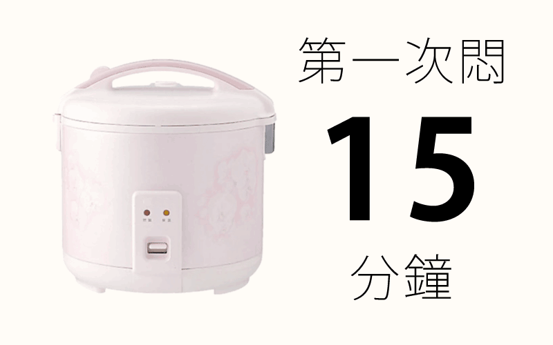 四、煮飯+悶飯:開始煮飯,當電子鍋完成煮飯時,不要馬上掀開鍋蓋,先悶上15分鐘,讓米完全糊化(完全糊化才會嚐到甜味)